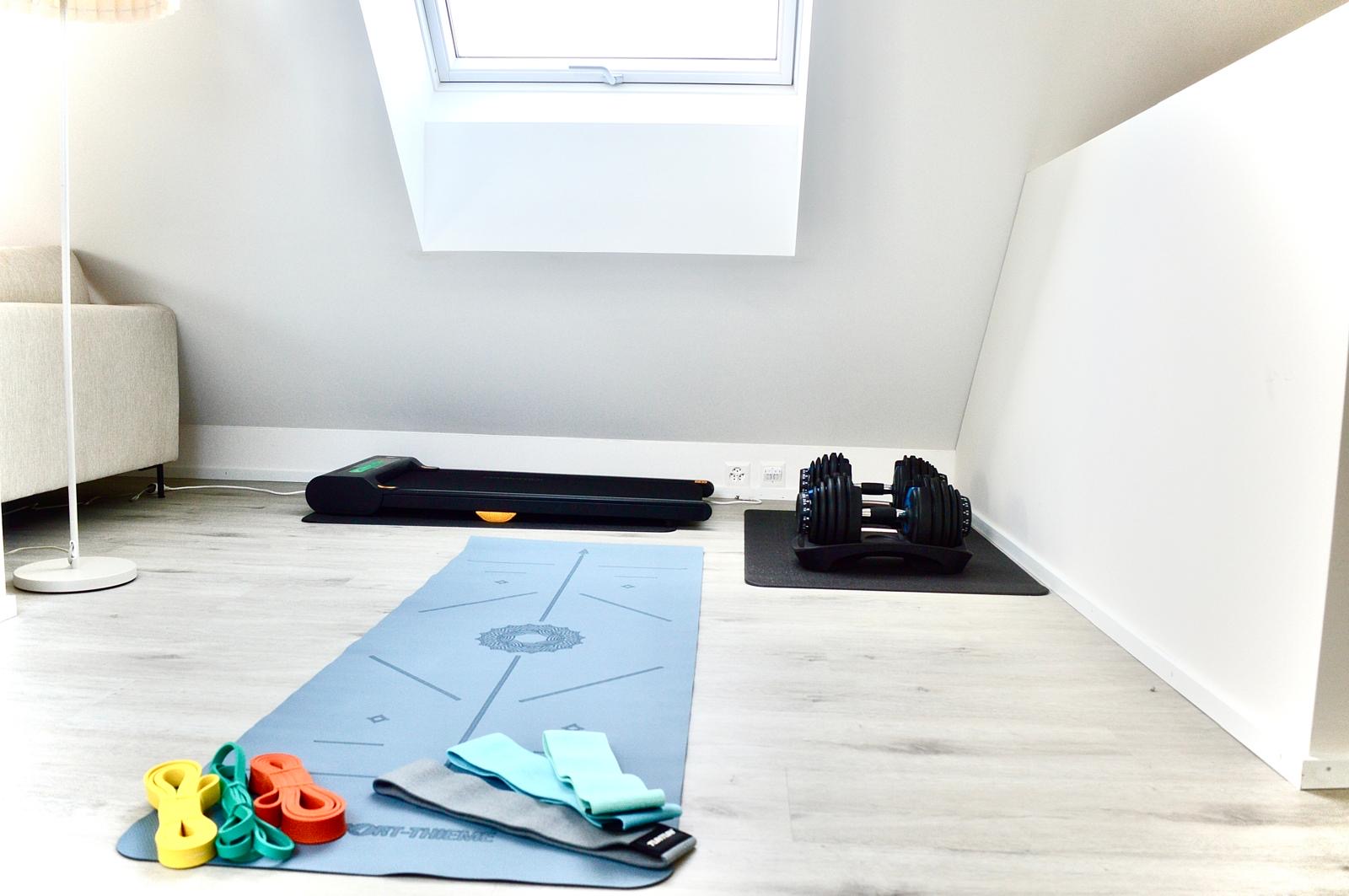 The home gym corner includes carefully selected, professional-grade equipment—ideal for maintaining strength, flexibility, and posture even on busy days.