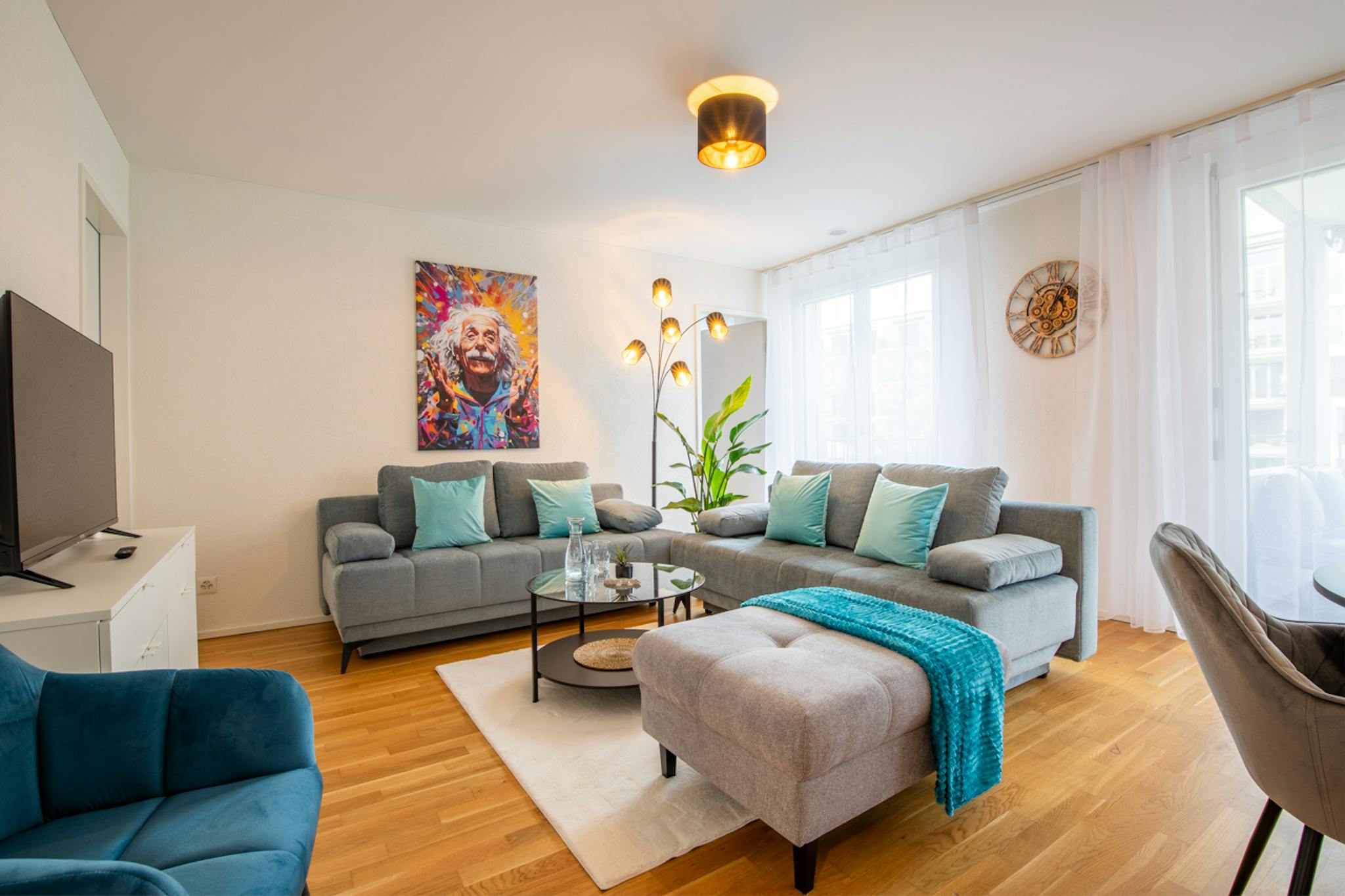 The 65m2 large 2.5 room apartment is stylishly furnished and offers a unique atmosphere. Additionally, you will find a range of extras here that far exceed the standards of average (hidden) apartments.