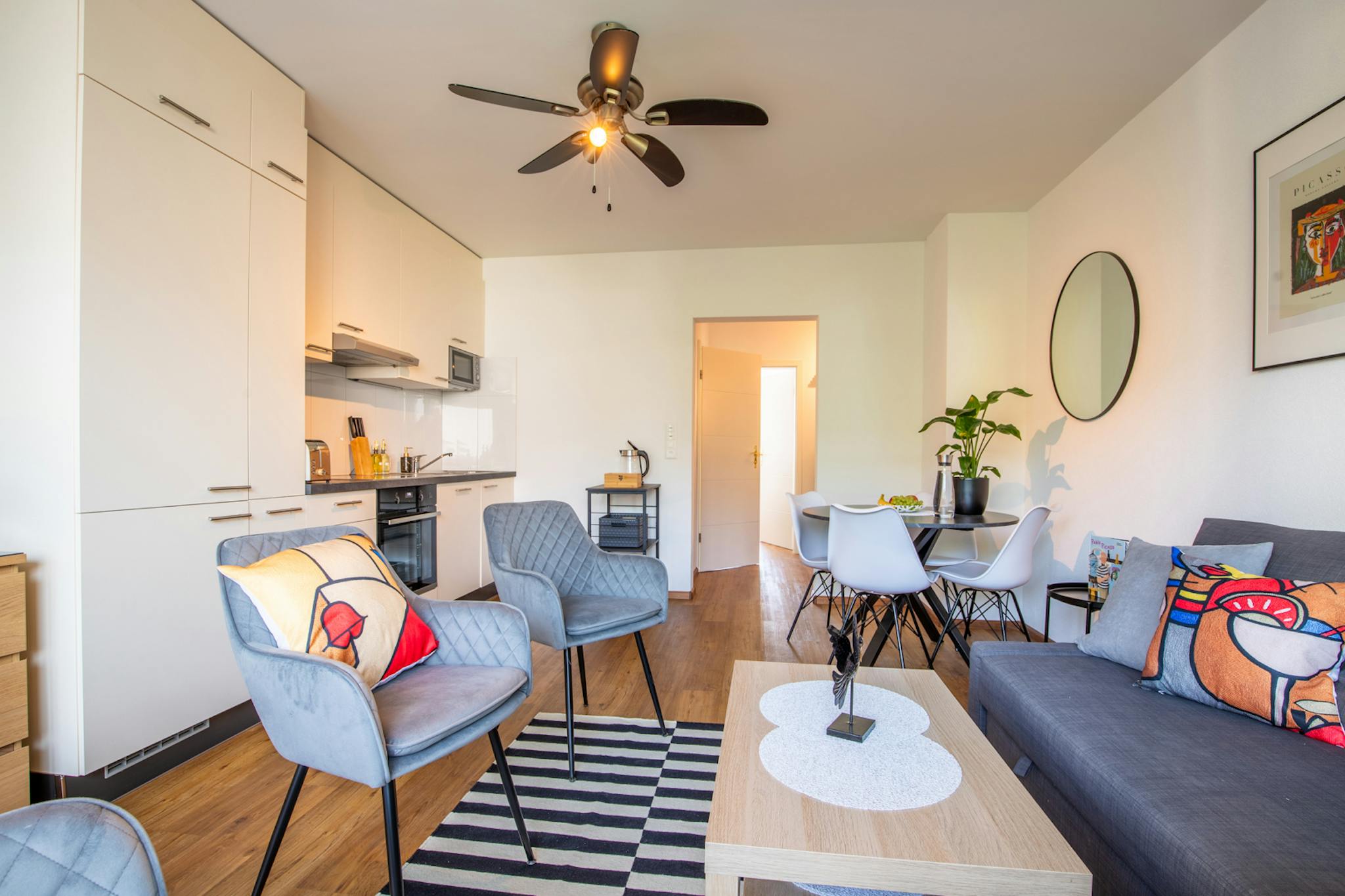 Stylishly furnished 3.5 room apartment with NETFLIX in the city center, close to SBB train station, Steinenvorstadt, airport, and bus stop "Bruderholzstrasse." 24h self-check-in. Free public transportation in Basel thanks to the "BaselCard." 11 minutes on foot from the train station, 14 minutes from the airport by taxi.