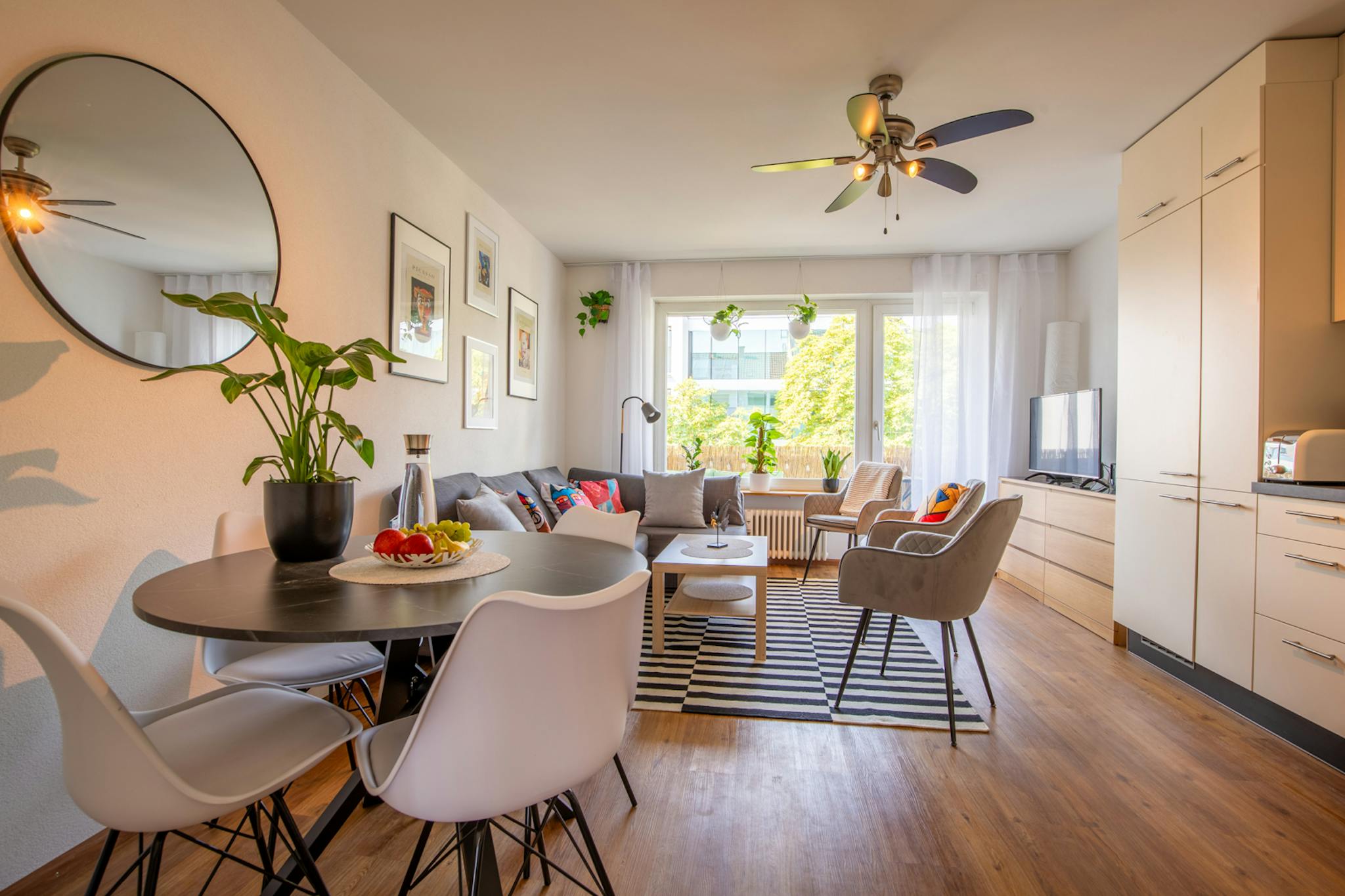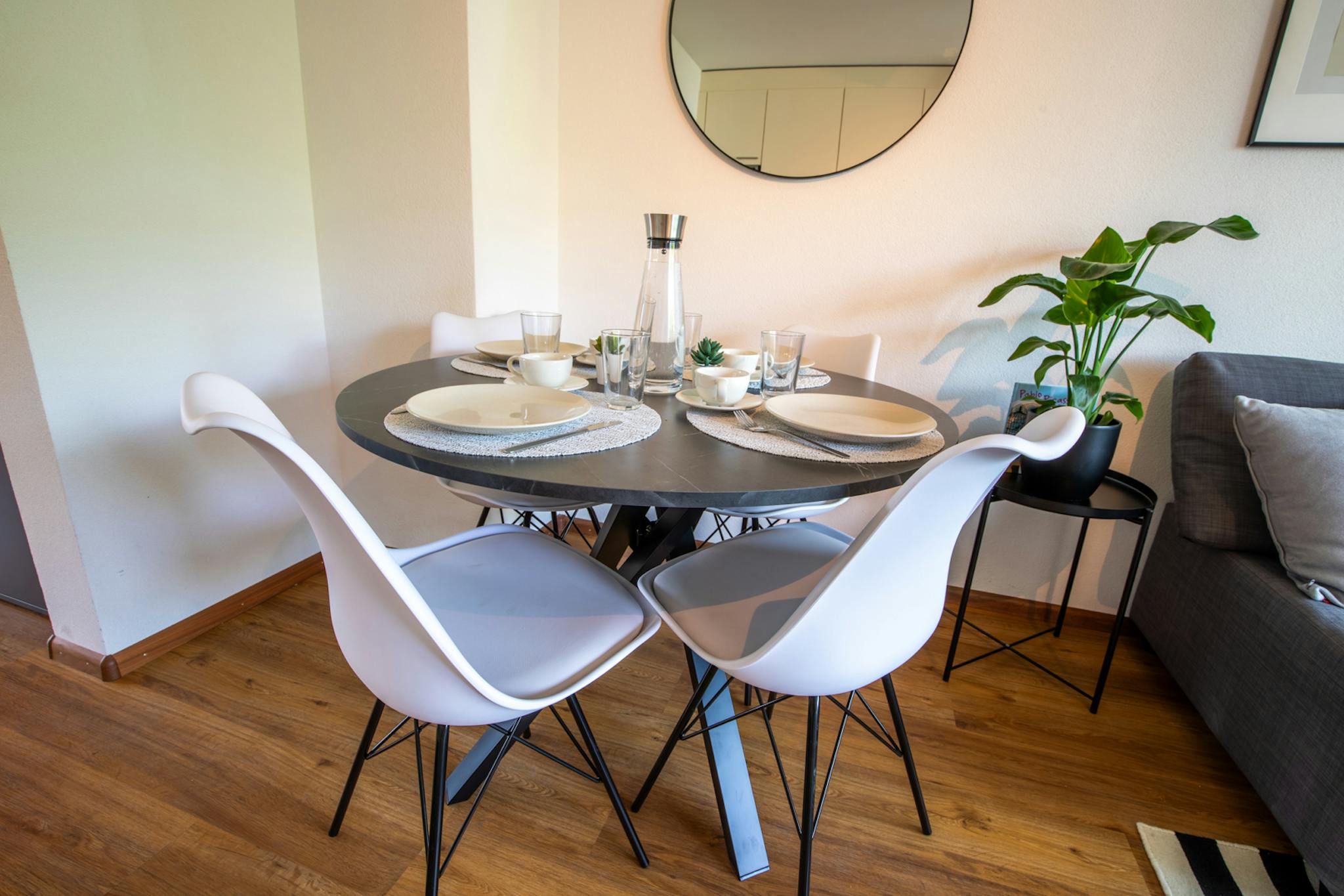 The 56m2 spacious 3.5 room apartment is stylishly furnished, providing a unique atmosphere. Additionally, you will find a range of extras here that significantly exceed the standards of average (hidden) apartments.