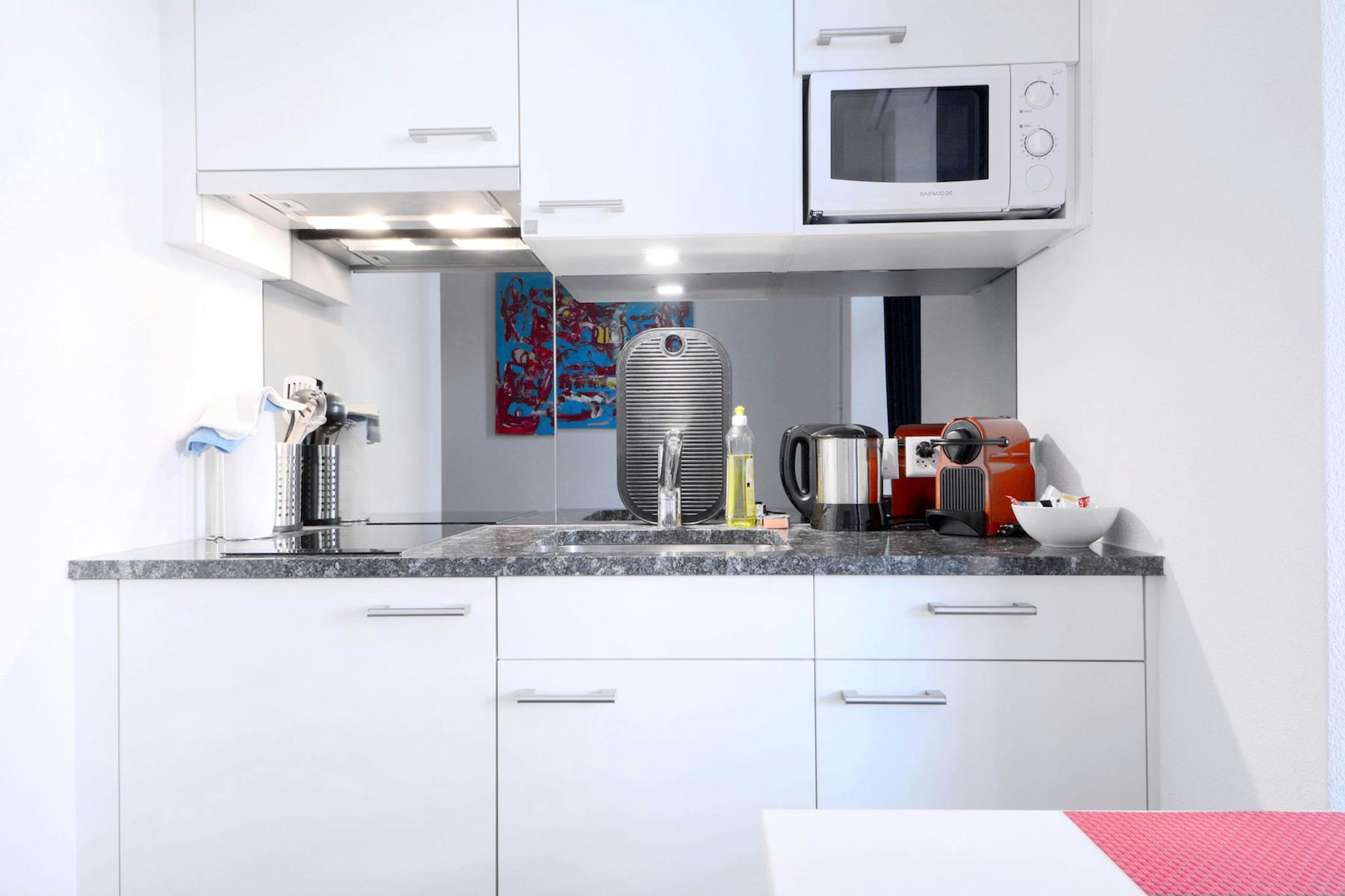 The Studio Apartment is located on Tribschenstrasse. The street is located in a popular residential area (Tribschen-Langensand) and offers various leisure and shopping facilities in the immediate vicinity. In the same building as the "Station Apartments" is the restaurant Elios, which offers pizza, risotto, pasta and other dishes. The Grottino 1313 restaurant, the Prizzi Ristorante and the Peperoncini bar are also nearby. From the "Luzern, Werkhofstrasse" bus stop, various buses will take you to Lucerne railway station, the old town and all the sights in just a few minutes.