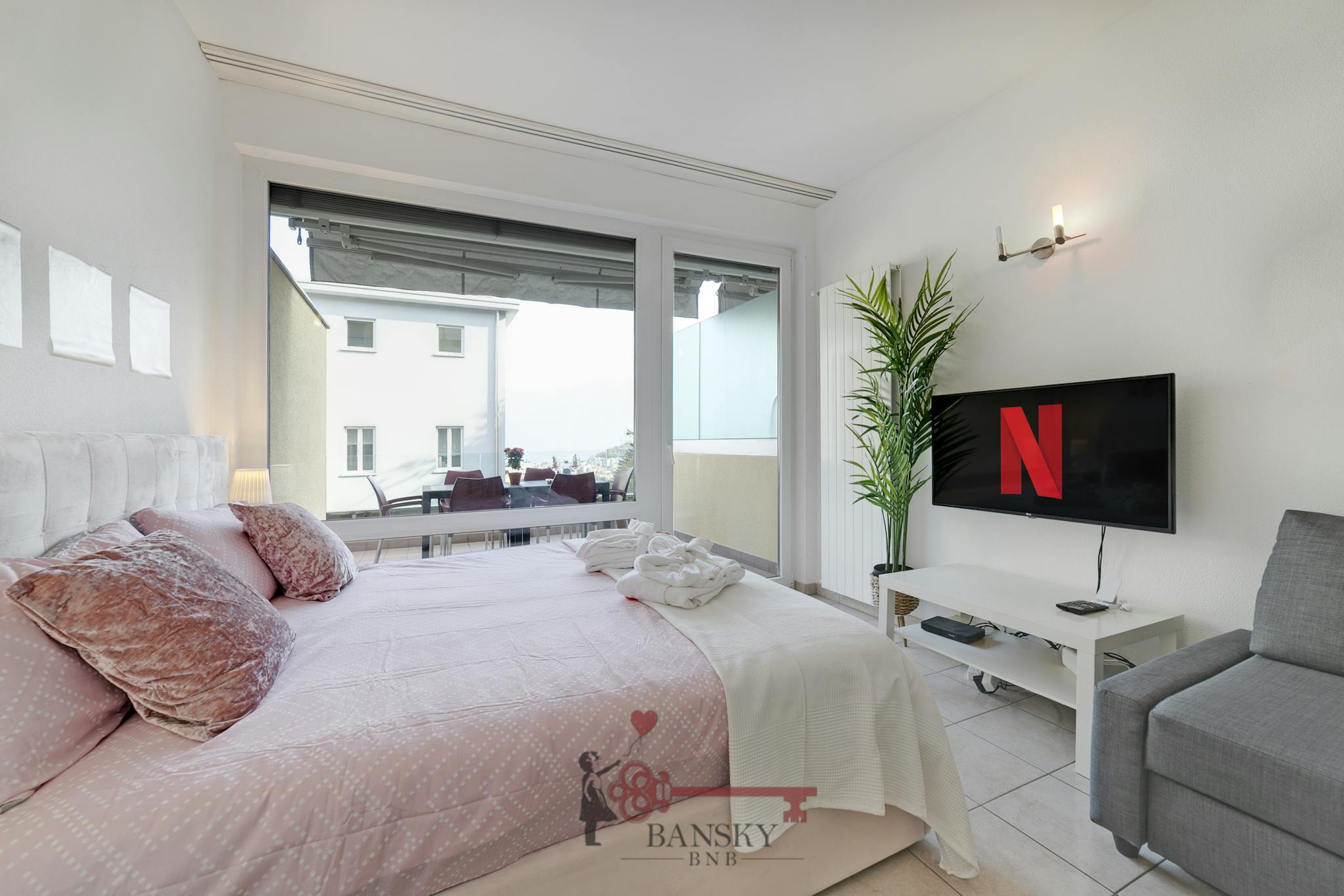 We've chosen this location for the couch area, so if you prefer to relax without technology, you can also read your book with a nice tea or a glass of wine and admire the window.