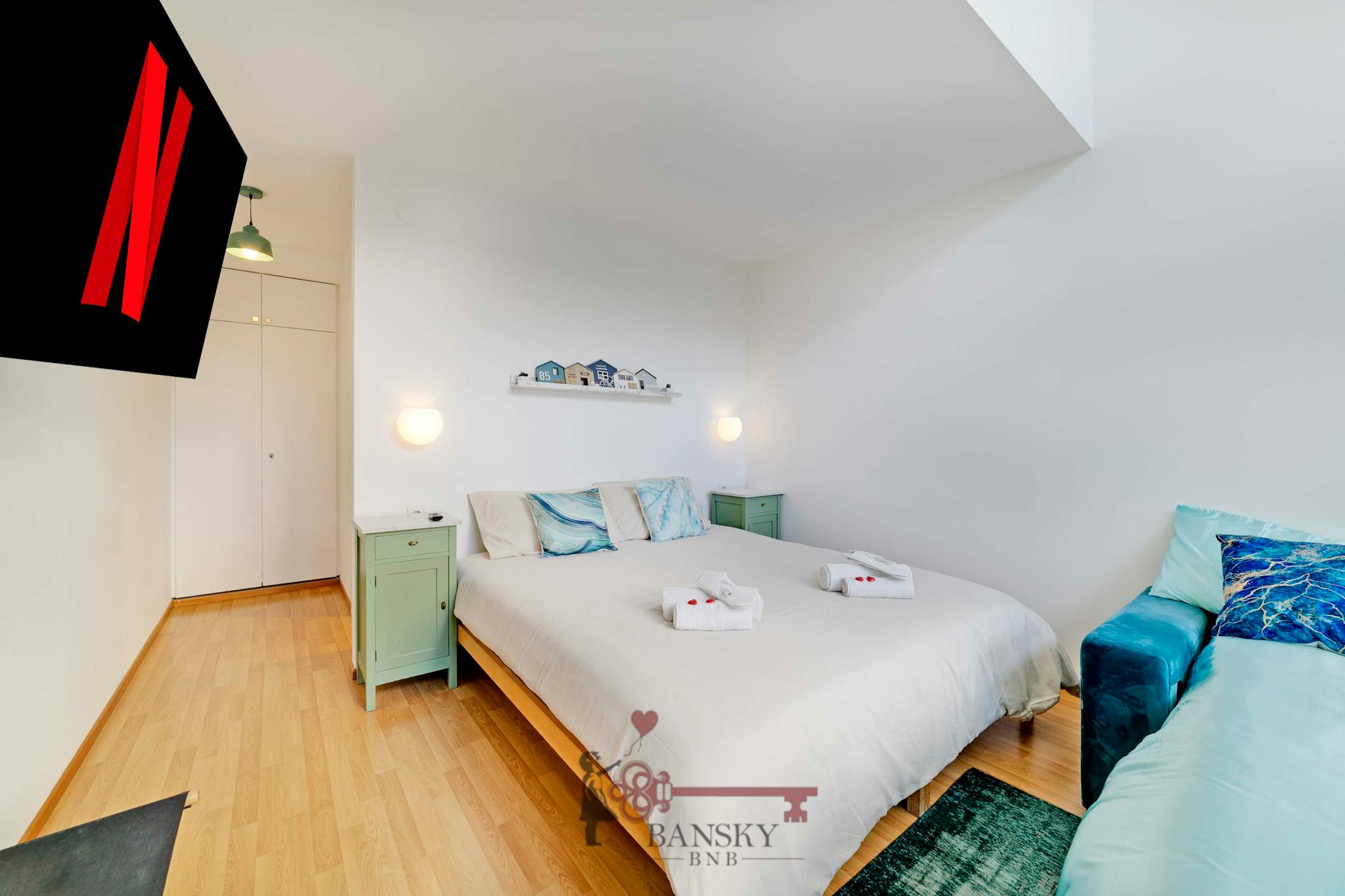 The television is huge and you will be able to watch both Netflix and TV channels.