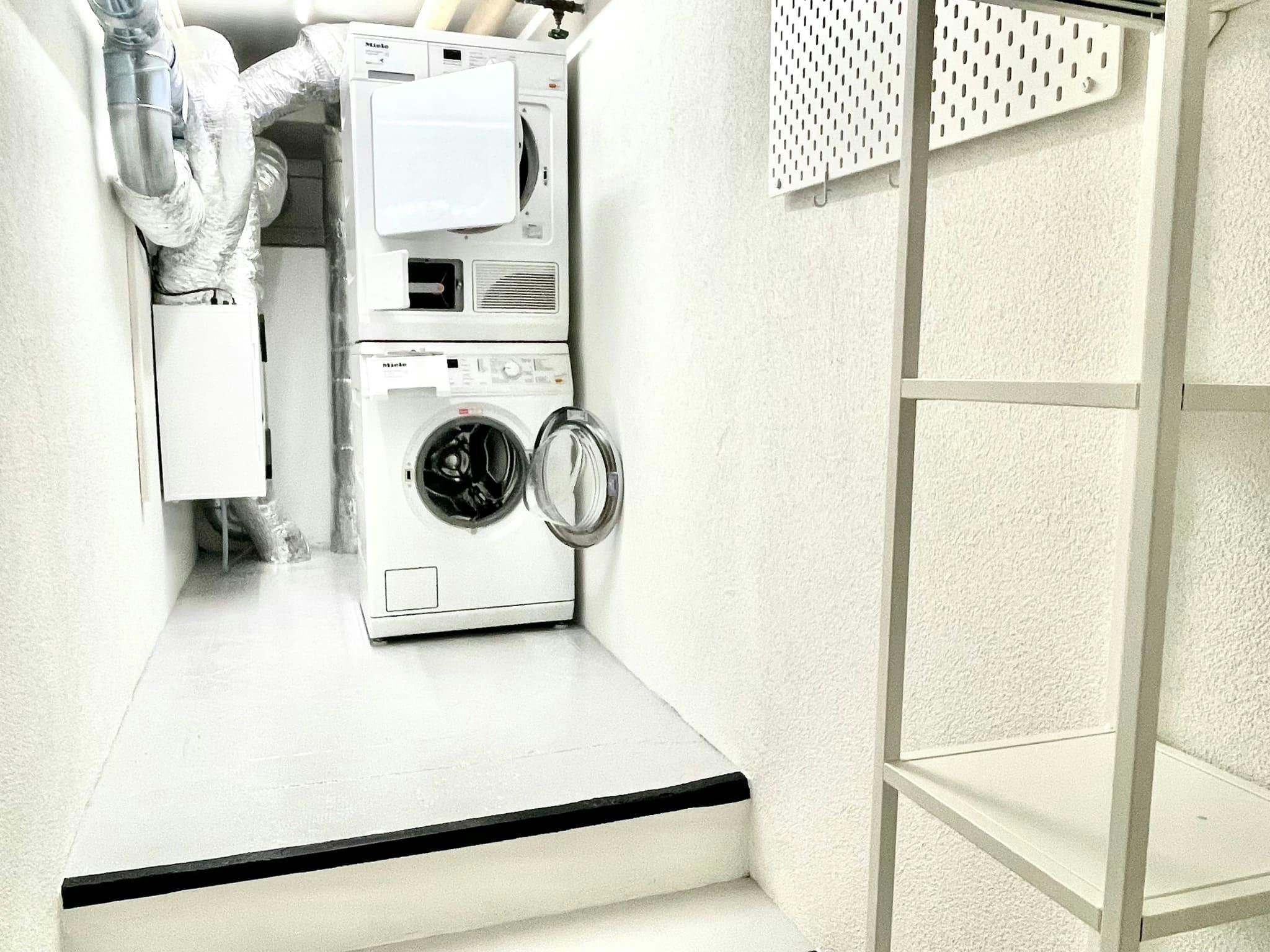 The 2.5-room apartment on 60 square meters has a private & separate entrance. It has a small entrance area with an adjoining work area, which is connected to a large kitchen that offers all amenities such as a glass ceramic stove, oven, large refrigerator, and dishwasher. The open living and dining area is approx. 25 square meters, the bedroom has an adjoining private bathroom with a large rainforest shower and there is a separate toilet. There is an integrated walk-in dressing area with plenty of storage space and drawers. Thanks to underfloor heating and comfortable ventilation, the temperature, and climate in the apartment are always very pleasant all year round. The idyllic garden area is exclusively for you. You will also find a storage room with your private washing machine and dryer.