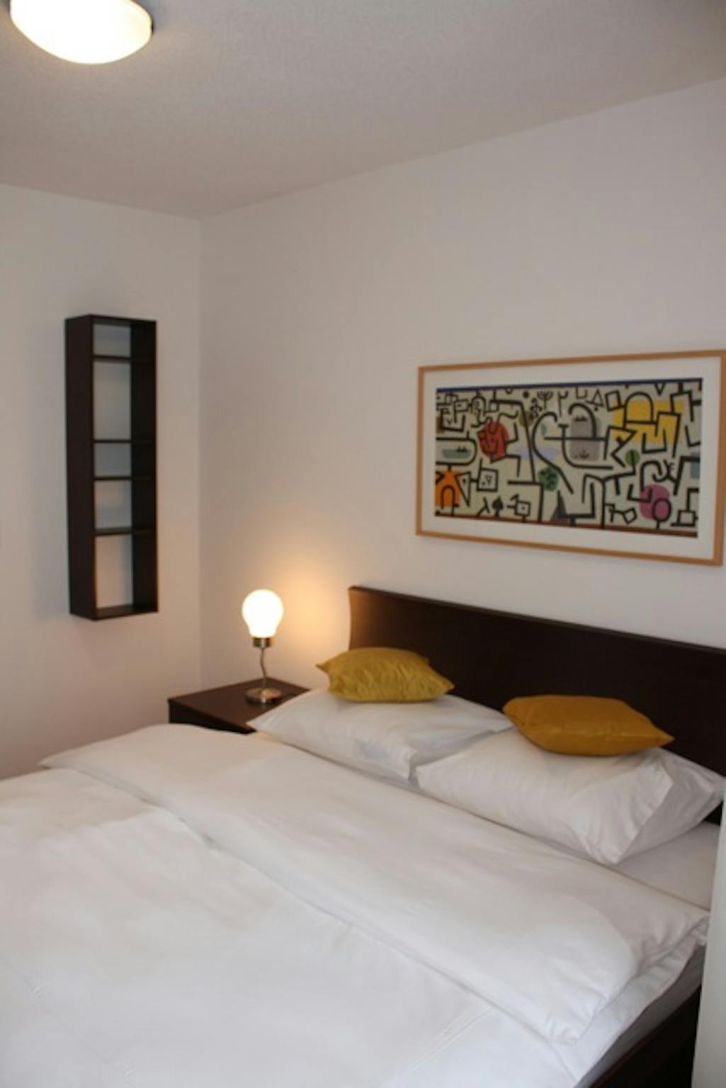 The apartment is fully equipped including flat screen TV and WiFi. The bed sofa in the living room provides additional space for guests. Household appliances such as microwave, coffee machine, kettle, toaster, iron, vacuum cleaner and hairdryer are available. The kitchen is equipped with the usual utensils such as pots, pans, dishes and cutlery.
