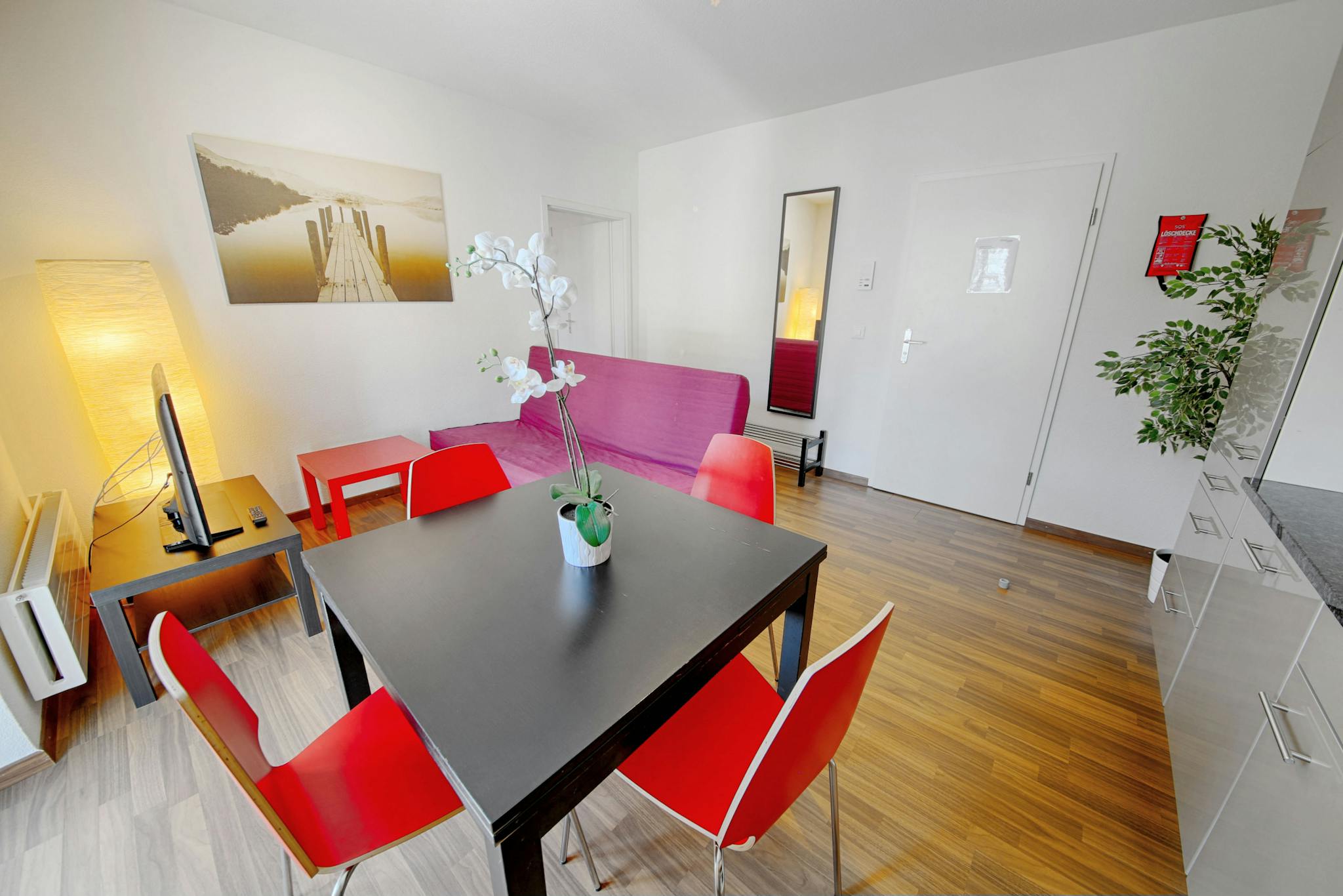The furnished apartment called "Raspberry II" impresses with its complete furnishing and its central location. From here you can reach all major corporations and Zurich city centre in a short time. The apartment has 2.5 rooms and can accommodate a total of four guests. A double bed and a sofa bed are available. The apartment also has a private kitchen with all necessary utensils: cooker, fridge, oven, microwave and many small extras. In the bathroom you will find a toilet, shower, hair dryer and various hygiene articles. On the balcony you can really relax on warm summer evenings.