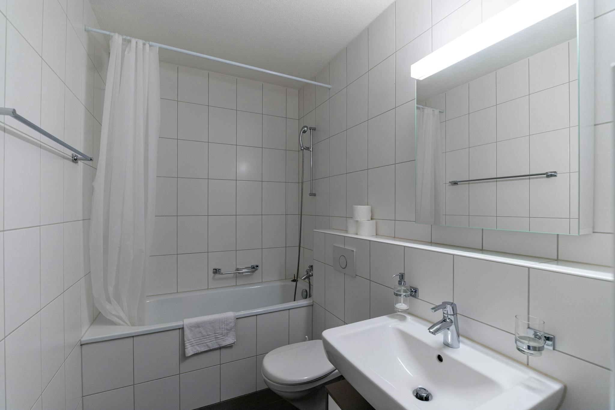The apartment is fully equipped including flat screen TV and WiFi. The bed sofa in the living room provides additional space for guests. Household appliances such as microwave, coffee machine, kettle, toaster, iron, vacuum cleaner and hairdryer are available. The kitchen is equipped with the usual utensils such as pots, pans, dishes and cutlery.