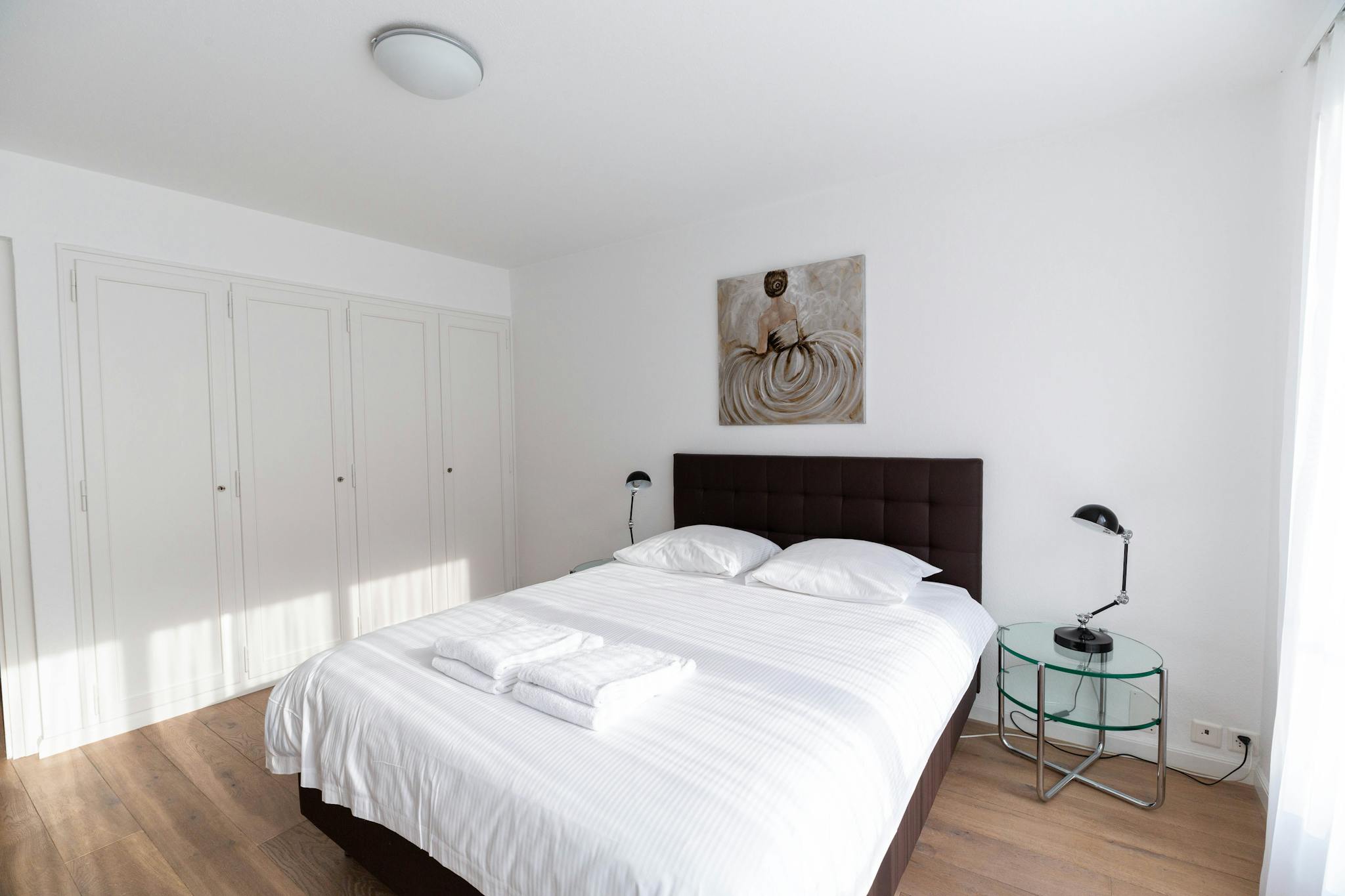 The apartment is fully equipped including flat screen TV and WiFi. The bed sofa in the living room provides additional space for guests. Household appliances such as microwave, coffee machine, kettle, toaster, iron, vacuum cleaner and hairdryer are available. The kitchen is equipped with the usual utensils such as pots, pans, dishes and cutlery.