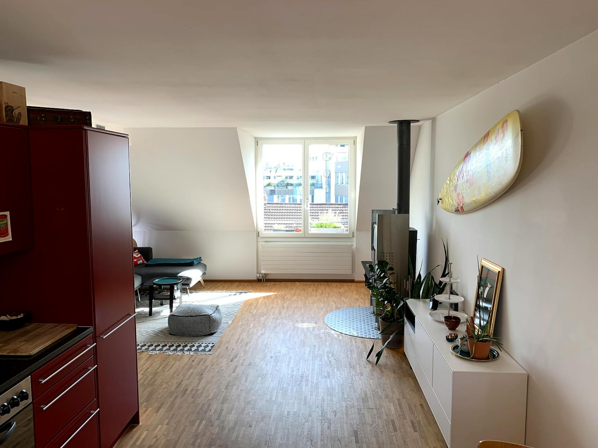 2,5 Zimmer Wohnung Nähe Kalkbreite / Bezirksgebäude im Kreis 4 mit eigener Dachterrasse, Kamin, Badewanne für Januar (max. 29.12-07.02.) zu vermieten.