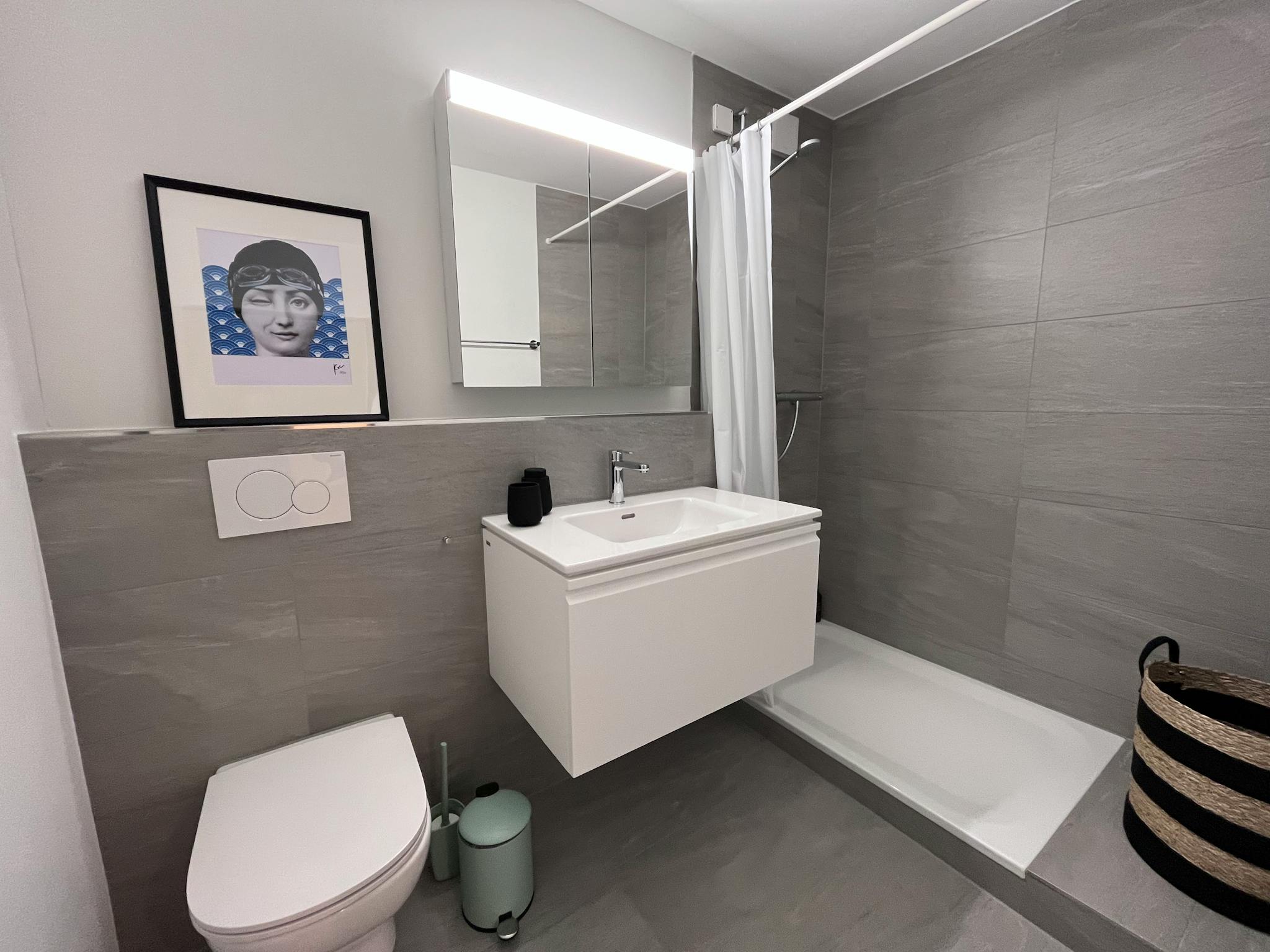 This recently built flat offers you the finest comfort on all levels – it’s a great place to live and work in a home office. You have your own washing machine and dryer as well as an additional cellar compartment at your disposal. For your visitors, the sofa can be converted into a comfortable sofa bed in no time.