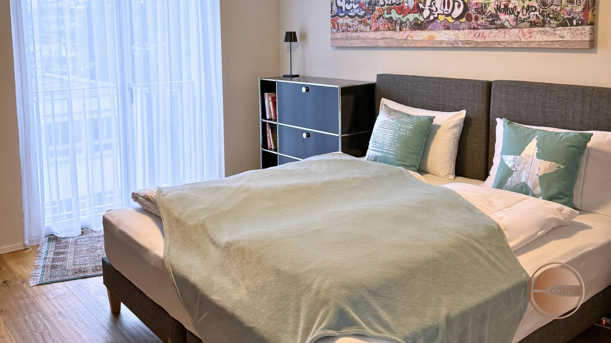 The high-quality equipped apartment impresses with its thoughtful layout and selected materials. The spacious terrace, connecting the living room and the dining area, offers a spectacular view of the city and Lake Zurich, inviting you to relax. Every detail has been carefully chosen to create a harmonious and welcoming atmosphere that will captivate you from the very first moment.