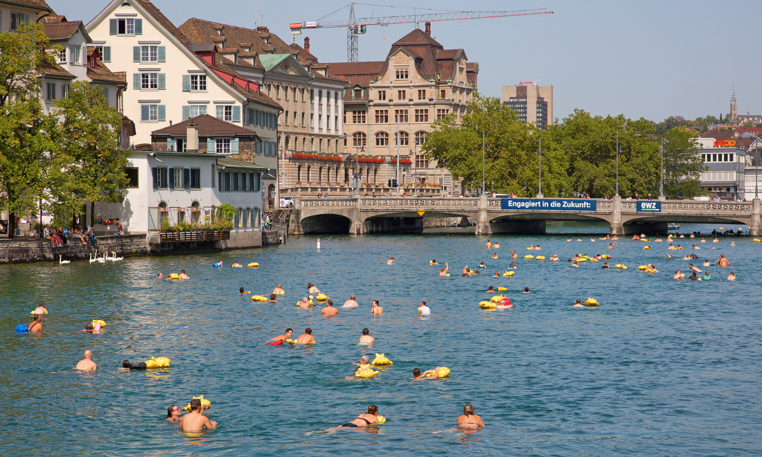 Alongside those bobbing down the river enjoying the view, there is also a competitive swimming event. The EWZ challenge, named after the local energy supplier, is a race between experienced swimmers to see who can complete the two-kilometre route in the fastest time.